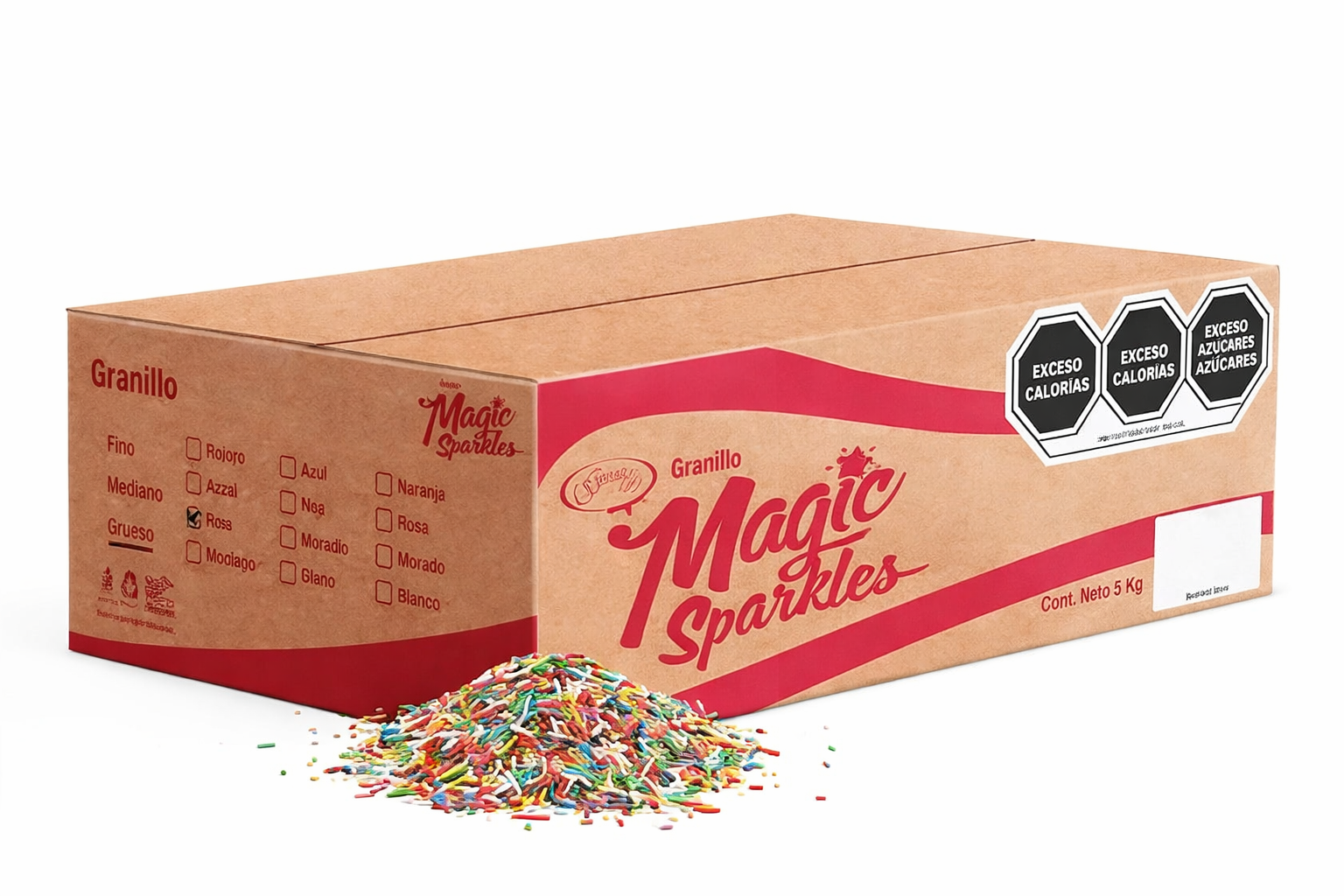 Producto elaborado a partir de una mezcla de azúcares y los más finos ingredientes que logran un granillo uniforme, brillante de colores, fijos que gracias a su composición estable; tolera un amplio rango de temperaturas, resistiendo horneado y congelación