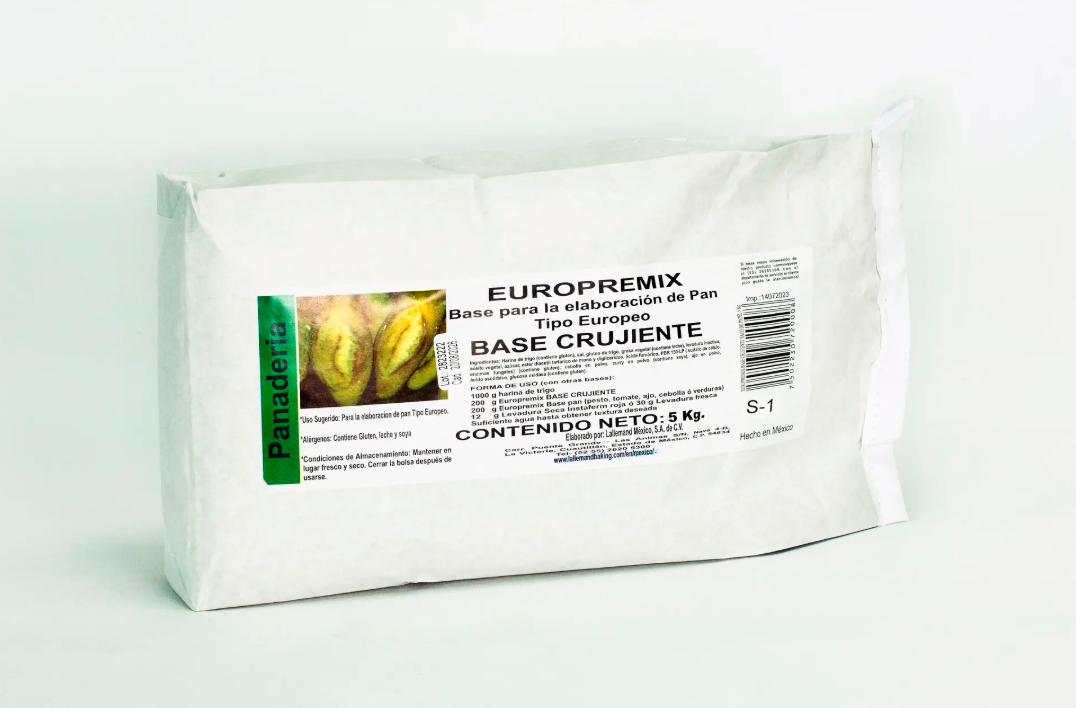 Base para la elaboración de pan tipo europeo. Esta mezcla permite reducir los tiempos de fermentación y moldear diferentes estilos de pan, obteniendo como resultado un pan tipo Gourmet y/o croutones que pueden servirse con sopas, aderezos, ensaladas, etc.